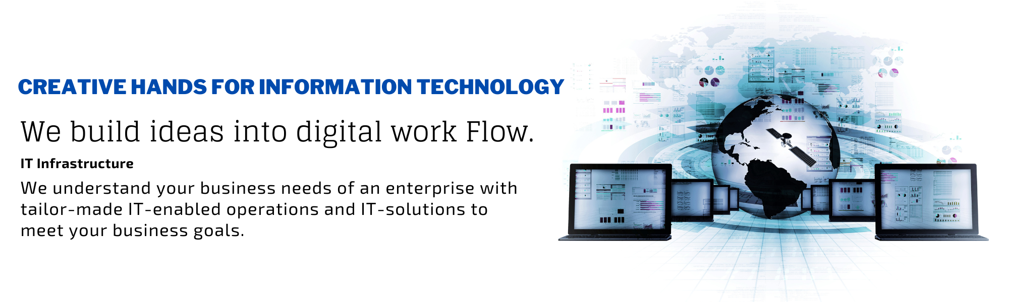 The world is moving rapidly towards more advanced technology choices. People are more open to finding new and creative ways to solve daily problems. We at Creative hands infotech are trying to bring this knowledge to men. Our integrated approach caters to a variety of industries and helps them solve their issues and remove bottlenecks. We're adding quality and cost savings to the table.