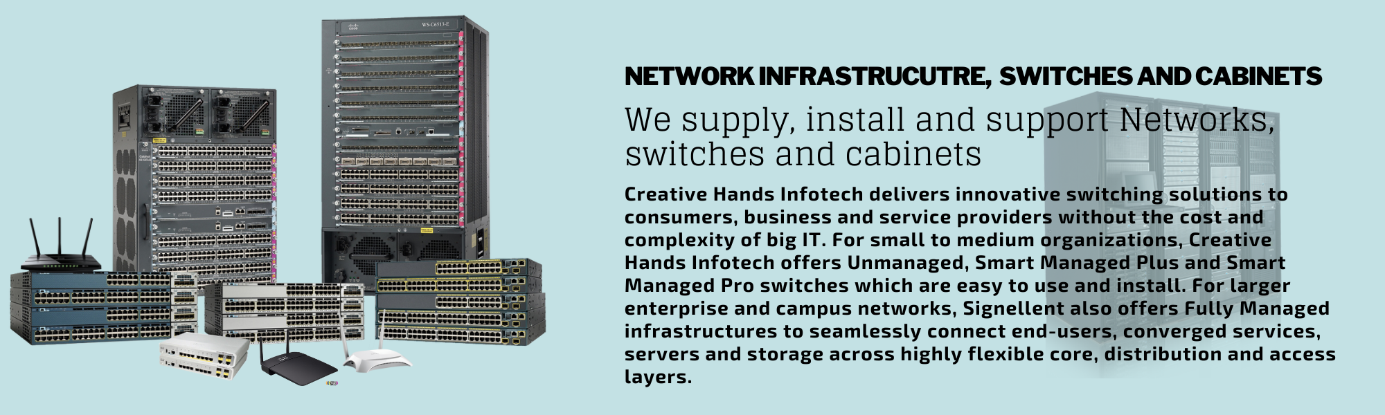 We assist companies to boost profit and growth with dedicated IT-enabled operations and IT-solutions. Our expert team will help your business to come across all the risks that you may face day to day. Our IT experts will analyse the requirements of your business environment to adopt the best IT infrastructure solution for your enterprise. Our infrastructure services include structured cabling, data centres, network solutions, hardware set up etc.